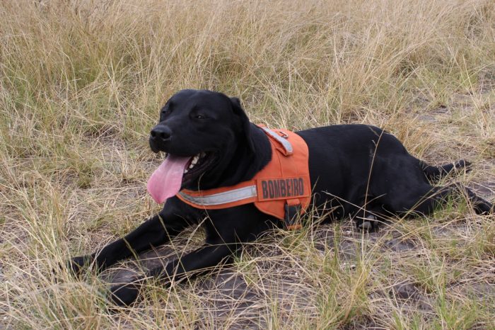 O cão bombeiro Barney, da raça labrador, com pouco mais de dois anos de idade, é o representante deste seleto grupo que está à disposição para os serviços de busca.