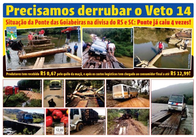 Liguem para os gabinetes dos deputados e senadores de Santa Catarina e Rio Grande do Sul e peçam a eles além de votarem pela derrubada pedirem apoio ao seu partido e ao maior número possível de deputados (as) e senadores (as), pois, precisamos no mínimo de 257 votos NÃO na Câmara e 41 no Senado.”