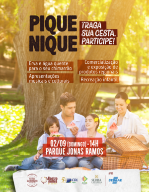 Agora, para fechar com chave de ouro tudo isso, neste domingo, dia 02 de setembro, às 14 horas, acontece no Parque Jonas Ramos um Piquenique que encerra a programação dos dois eventos.