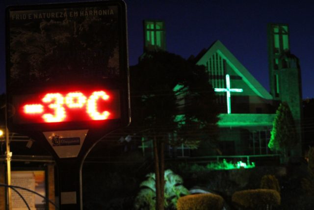Depois de vários dias de muita chuva, o frio voltou com tudo na Serra Catarinense. As temperaturas voltaram a despencar, e a geada voltou a cobrir de branco a região. Em Urupema, por exemplo, variaram de -3 a -4ºC.