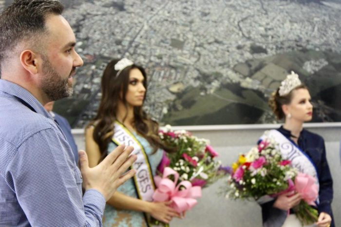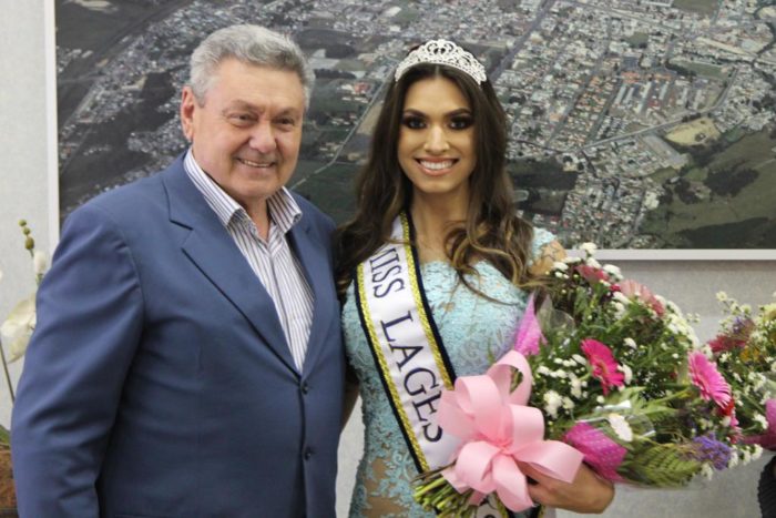 Na tarde desta segunda-feira (29), a Miss Lages 2017, Larissa Albino Branco passou a faixa e a coroa com o testemunho do prefeito Antonio Ceron, à Caroline, que irá concorrer ao Miss Santa Catarina, no dia 1º de dezembro, em Balneário Camboriú.