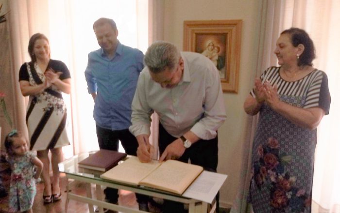 O termo de transmissão de posse foi lido em público e assinado. Juliano Polese (Progressistas) será o prefeito por 30 dias. Antonio Ceron sai de férias para descansar o corpo e a mente, como disse.