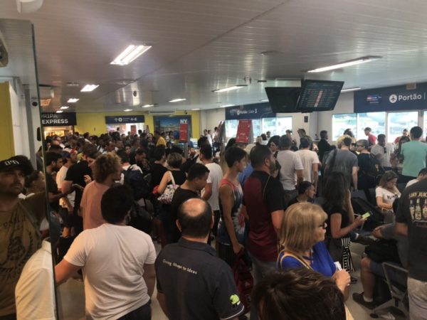 A publicação foi feita junto com uma foto das filas para embarque dentro do terminal de passageiros da Capital.