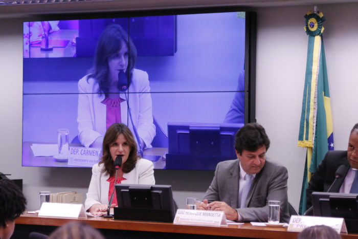 Em lançamento oficial da Frente Parlamentar Mista da Saúde, nesta quarta-feira (08), a deputada federal Carmen Zanotto (Cidadania) pediu ao ministro da Saúde, Luiz Henrique Mandetta, a ampliação do diálogo da pasta com os colegiados que atuam no Congresso Nacional sobre o tema.