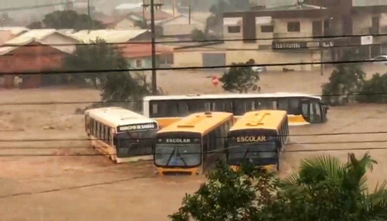 Nas cidade entre Sangão e Jaguarana populares chegaram a filmar um veículo e até mesmo ônibus sendo arrastados pela água. Veja no vídeo acima.