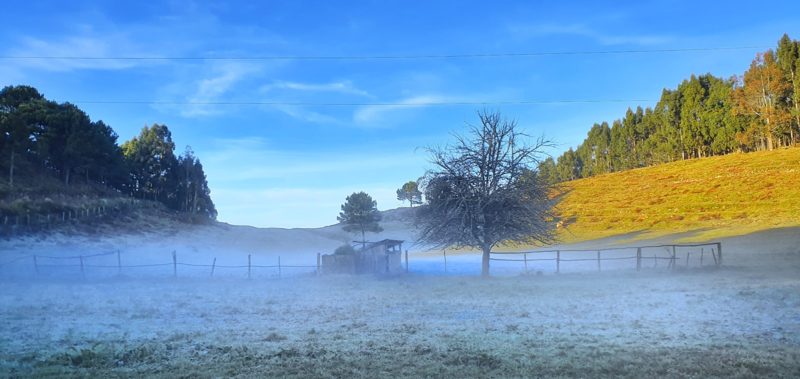 Serra Catarinense voltou a ter registro de temperaturas negativas durante o amanhecer deste sábado (22), deixando a relva recoberta por uma fina camada de gelo e proporcionando um verdadeiro espetáculo de imagens de típica de Inverno.