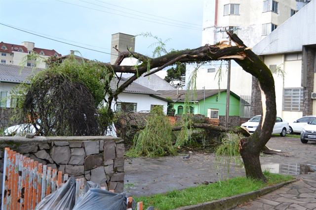 Conforme relatam os amigos do São Joaquim Online, uma forte rajada de vento atingiu o centro da cidade.