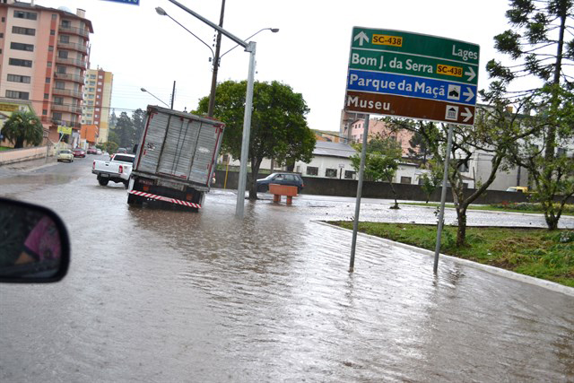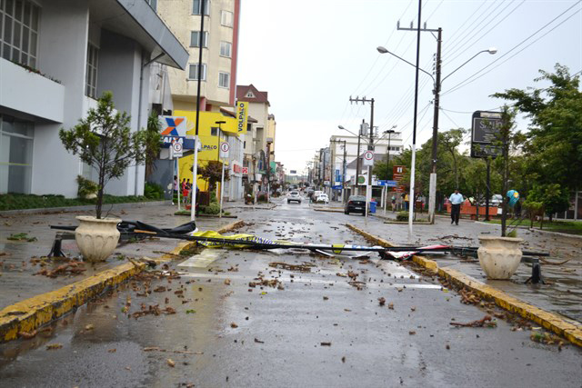 A chuva também causou estragos. Em uma hora e meia choveu mais de 25 mm fazendo com que as ruas centrais transbordassem.