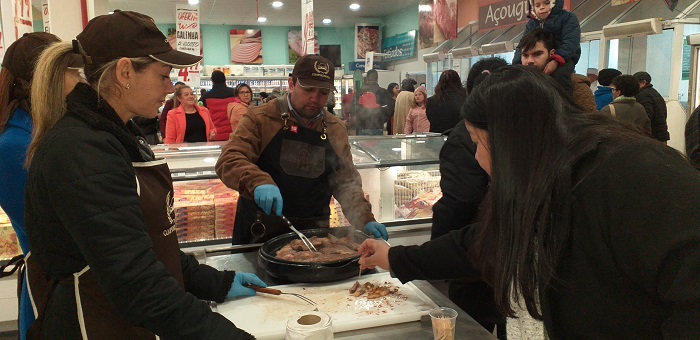 Fiz questão de conferir e registrar de perto o trabalho da equipe de degustadores da Coopertroas trabalhando no final da tarde e início de noite desta sexta-feira (5), no Supermercado Martendal, em Lages.