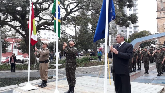 O ato realizado na praça João Ribeiro (da Catedral) teve o acendimento do fogo simbólico, realizado pelo pelotão do 1º Batalhão Ferroviário, e o hasteamento das bandeiras: do Brasil, Estado de Santa Catarina e município de Lages.