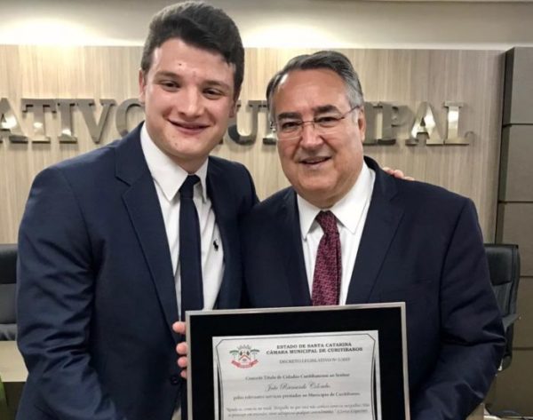 O ex-governador Raimundo Colombo foi agraciado com o título de Cidadão Curitibanense, concedido pela Câmara de Vereadores, em reconhecimento às obras realizadas no município durante a sua gestão no Governo.