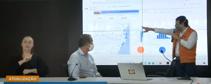 Assim que abriu a coletiva de imprensa, nesta sexta-feira, 10, o governador Carlos Moisés apresentou os números de Santa Catarina, e, desta vez, relatou os casos que também tiveram melhora e deixaram a UTI, transferidos para a enfermaria e que em breve deverão dar alta. São 80 pacientes nestas condições, o que é notícia boa.