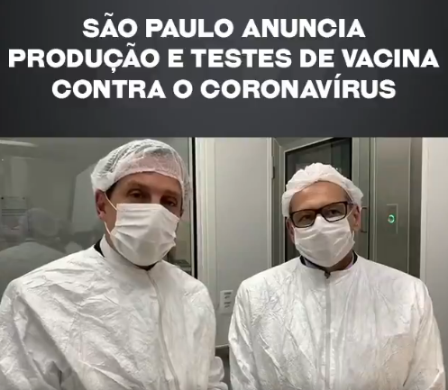 Segundo ele, este é um dia histórico para a ciência no Brasil e em SP. Vamos anunciar que São Paulo vai produzir a vacina contra o coronavírus, através de parceria entre o Instituto Butantan e o laboratório internacional Sinovac Biotech.