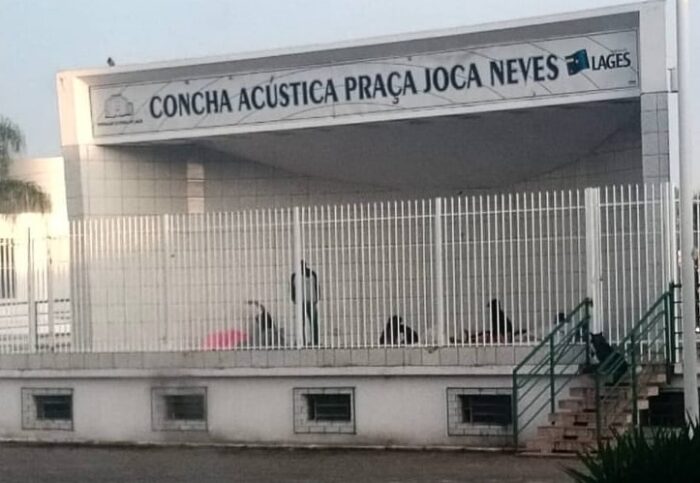 A providência da instalação de grades na concha acústica da Praça Joca Neves, em Lages, parece não ser impedimento aos velhos “inquilinos” do local.