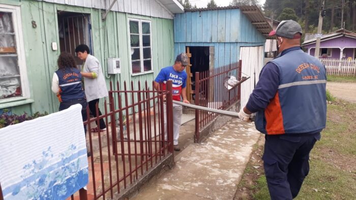 Assim que chegou a primeira carga de telhas de fibrocimento, na manhã deste domingo (5), em Lages, enviada pela Governo do Estado, o trabalho de distribuição foi iniciado.