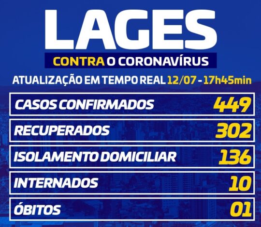 A Secretaria Municipal de Saúde envia novo Boletim Epidemiológico. E como se constata, os números de casos de coronavírus têm subido gradativamente, e os confirmados totalizam 449. Já os recuperados somam 302. Leve-se em conta também o aumento dos casos de pacientes que se encontram em isolamento domiciliar, 136. Observe que o número de internados no Boletim deste domingo (12), atinge a 10 pacientes. Um óbito registrado.