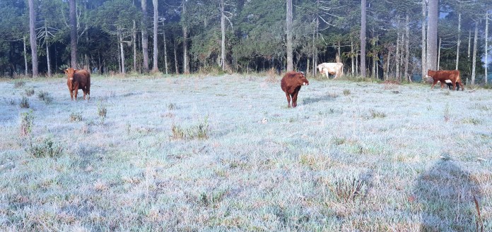 Nos campos joaquinenses uma forte camada de gelo deixou os animais sem pastagem