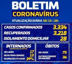 Quando a gente pensa que o coronavírus está com cada vez menos incidência, logo se muda de opinião ao receber o Boletim Epidemiológico de Lages. Na quarta (7) havia 20 pessoas em isolamento domiciliar. Já na quinta-feira (8), o número subiu para 28. Outros 23 engrossam a lista de casos confirmados chegando a 3.334., contra 3.218 recuperados. O índice de ocupação da UTI Covid-19 tem se mantido na média de 39%. Em suma, quem pensa que já dá para se soltar e não tomar os cuidados básicos de proteção, está muito errado.