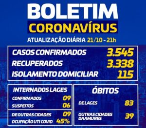 A ocupação dos leitos é que caiu para 45%. Infelizmente, mais dois óbitos ocorreram em Lages. Agora são 83.
