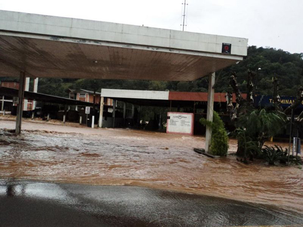 Em Luzerna, o Rio Limeira transbordou e invadiu casas e ruas.