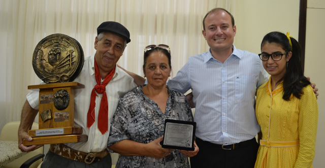 Mas, resgatando o assunto da visita ao Gabriel, o patrão do CTG Anita Garibaldi, Antônio Barbosa, recebeu do Secretário uma placa alusiva à grande conquista, a de Campeão Geral do 30º Rodeio Internacional de Vacaria.