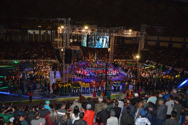 Ao lado, o ginásio Jones Minosso já começava a receber o grande público, e que, aos poucos lotou. Sem demora, mais de cinco mil pessoas estavam a postos para conferir o espetáculo da abertura oficial.