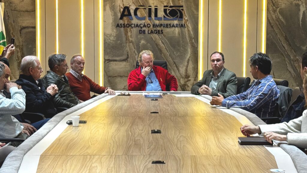 A Associação Empresarial de Lages (ACIL) recebeu, nesta segunda-feira (6), uma comitiva portuguesa que participa do Seminário Internacional de Agronegócio, Desenvolvimento Regional e Empreendedorismo (SEMIARE). Durante o encontro, foi assinado um termo de cooperação entre a ACIL e representantes da região do Alentejo, consolidando uma parceria voltada ao intercâmbio de experiências nas áreas de empreendedorismo, agronegócio, inovação tecnológica e internacionalização de negócios.
