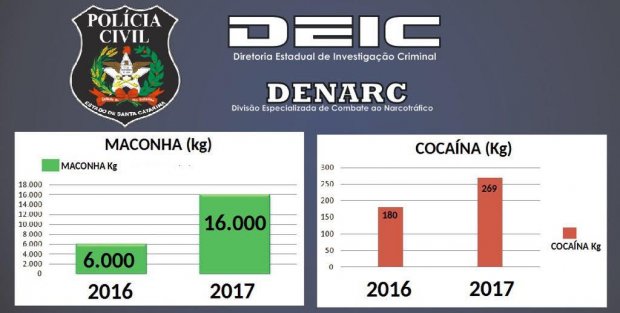 Polícia Civil, através da Divisão de Investigação Criminal (DIC) de Lages e da Polícia Rodoviária Federal, após trabalho de investigação realizado conjuntamente entre as duas instituições, ocorrido no dia 26 de junho de 2018, apreendeu aproximadamente 700 (setecentos) quilos de MACONHA.