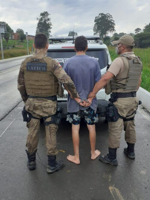 A Polícia Rodoviária de Painel visualizou o veículo roubado e contatou com o policiamento tático. Próximo à cidade de Palmeira, o veículo da vítima capotou, momento em que um dos ocupantes foi abordado e preso, e outros três fugiram sentido a mata fechada.