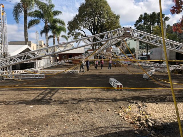 O palco, com as autoridades políticas, a realeza, e demais representantes de entidades parceiras, contou também com a justa homenagem a Aracy Paim, idealizador da Festa, em tempos primórdios, através da esposa dele, Adelma Paim.