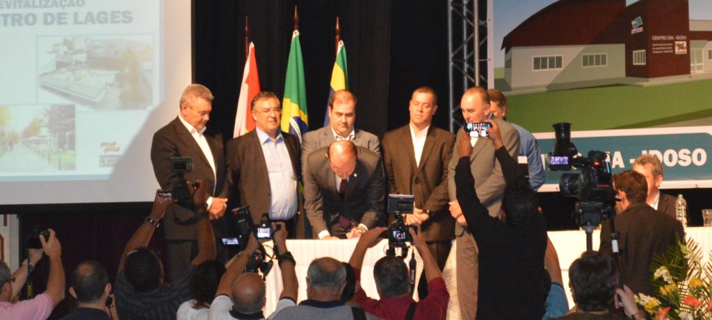 O Teatro Marajoara esteve lotado para testemunhar o importante e último ato oficial do governador Raimundo Colombo, em Lages. Foi na noite desta terça-feira (6).