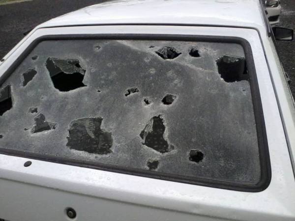 Não foi uma simples chuva de granizo, foi de pedra, e das grandes. O prejuízo foi enorme para muita gente.