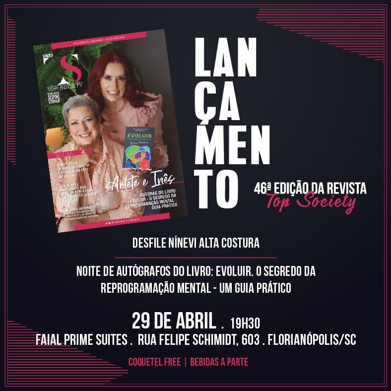 Tanto é, que mais uma vez ela irá dar ao projeto, notoriedade, em Florianópolis, com o lançamento da 46ª edição, no conhecido Hotel Faial, em Florianópolis. O evento promete homenagear as mais de 900 entrevistas publicadas, com histórias de personalidades e empreendimentos.