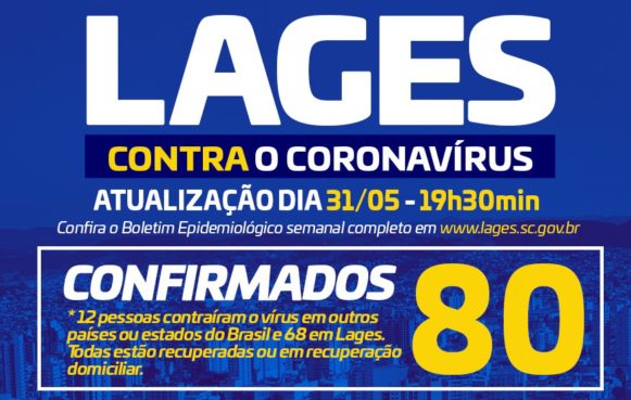 Felizmente Lages ainda não registra internações e nem óbitos, apesar de 80 casos confirmados de coronavírus. Todos os pacientes ou estão recuperados ou em recuperação domiciliar.