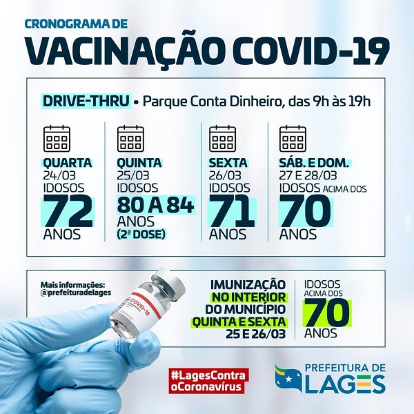 Importante dizer que a vacinação nas Unidades de Saúde, nesse caso, somente para pessoas com 12 anos ou mais. Serão distribuídas 150 senhas a partir das 13h00, em cada UBS.