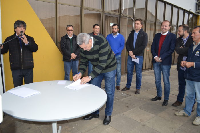 Na manhã desta segunda-feira (25), com diversas autoridades e convidados, foi assinada a ordem de serviço, e entregue à empresa Herval, de Herval do Oeste.