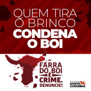 A proposta legislativa visa coibir a farra do boi que, mesmo proibida, continua sendo realizada em várias cidades de Santa Catarina. Hoje a farra do boi é considerada crime ambiental sob a Lei 9.605/98, mas não garante cadeia nem boletim de ocorrência.