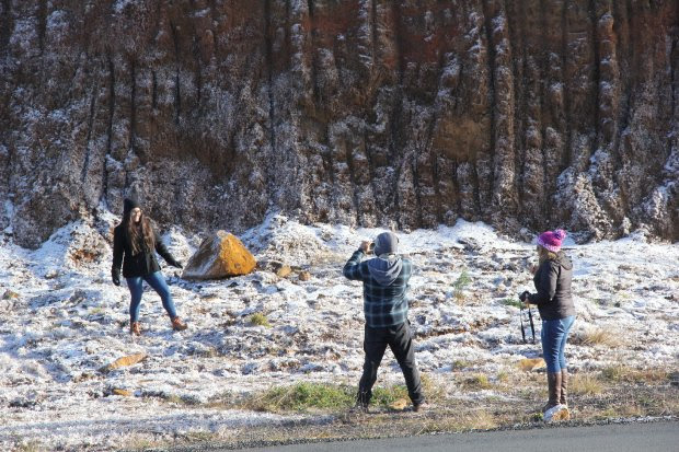 Com o frio intenso e os ventos entre 30km/h e 40km/h, a sensação térmica nos dois locais chegou a -27°C.