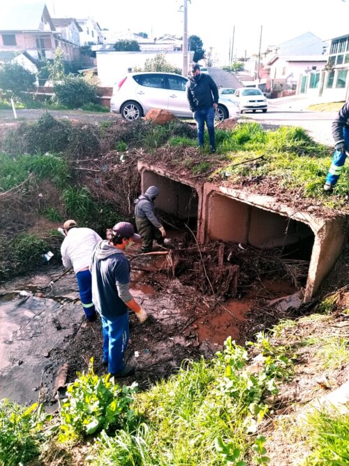 Nesta segunda-feira (24), atendendo reclamações da comunidade, o pessoal da Secretaria de Meio Ambiente, coordenado pelo secretário Fernando Amaral fez uma boa limpeza junto à Galeria, na Rua Euclides Cardoso, bem na divisa dos bairros Morro do Posto e Beatriz. Um ponto em que o lixo estava acumulado bloqueando até a passagem da água, criando problemas, especialmente em dias de muita chuva.
