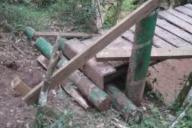 Até mesmo os pequenos pontilhões foram danificados, e a trilha completamente destruída, sem falar de outras atrocidades como dejetos fecais e papel higiênico espalhado. Parece que os tais vândalos já tem a devida identificação.