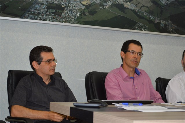 O prefeito Elizeu Mattos, mais os secretários de finanças Mateus Lunardi, e o de administração, Pedro Marcos, em coletiva, revelaram à imprensa algumas ações, desde 2012, e que resultaram em redução de custos.