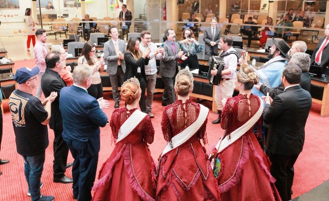 O roteiro na Capital do Estado incluiu visita à Assembleia Legislativa, a Realeza se encarregou do convite para a Sapecada, Recanto e para a Festa do Pinhão.
