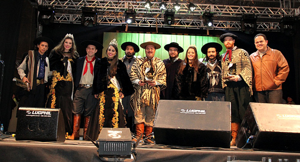 O palco, com as autoridades políticas, a realeza, e demais representantes de entidades parceiras, contou também com a justa homenagem a Aracy Paim, idealizador da Festa, em tempos primórdios, através da esposa dele, Adelma Paim.