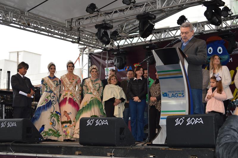 Assim, autoridades se perfilaram na tribuna de honra, para os devidos pronunciamentos e proclamarem inaugurado este primeiro momento da 30ª Festa Nacional do Pinhão, em Lages/SC.