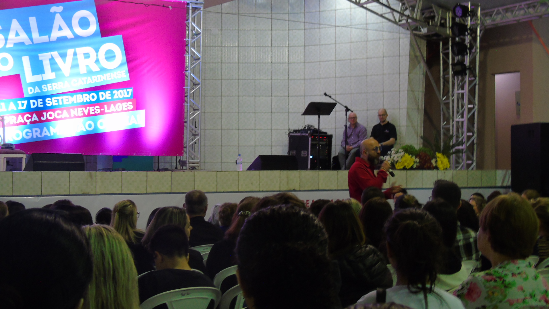 Após a abertura, Fabrício Carpinejar desceu do palco e foi ao lado do público para conversar sobre amor, amizade, família e vivências.