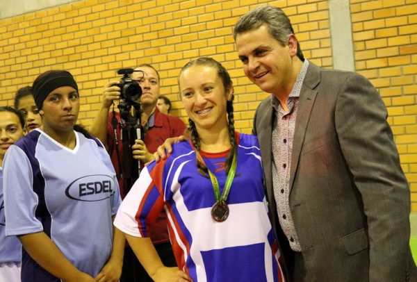 Antes da partida inaugural de futsal feminino entre as equipes Leoas da Serra, de Lages, e o Female, de Chapecó, o governador fez uma cobrança de pênalti simbólica, sem sucesso na goleira Giga, do time chapecoense. Depois tentou defender um pênalti cobrado pela mesma atleta.