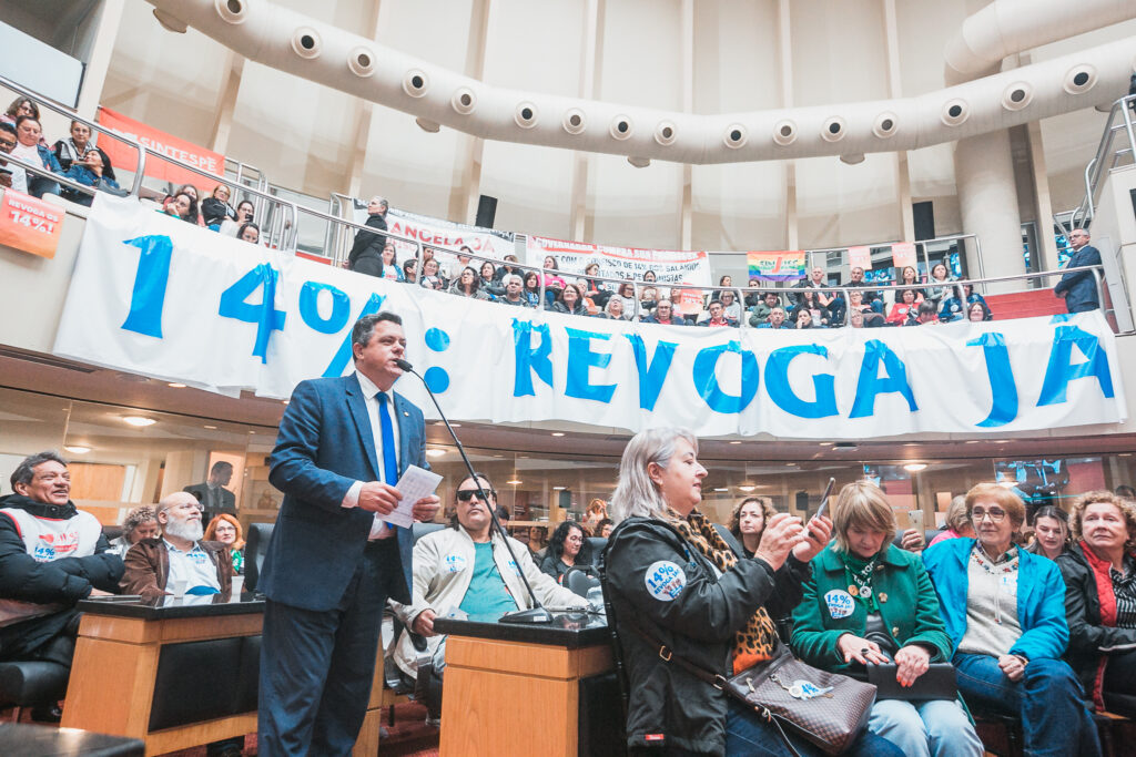 Esse foi um dos pontos que teve a completa rejeição dos deputados de oposição. Além de criticaram a segregação de massas proposta pelo projeto, defenderam que a cobrança dos 14% fosse revogada de imediato, e não de forma escalonada.