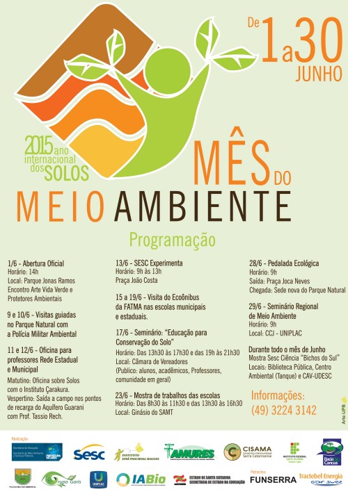 O Mês do Meio Ambiente seguirá com outras atividades, como mostra de trabalhos nas escolas, pedalada ecológica no dia 28, com saída às 9h da Praça Joca Neves, e o Seminário Regional do Meio Ambiente, no dia 29, às 9h, no Centro de Ciências Jurídicas (CCJ) da Universidade do Planalto Catarinense (Uniplac).