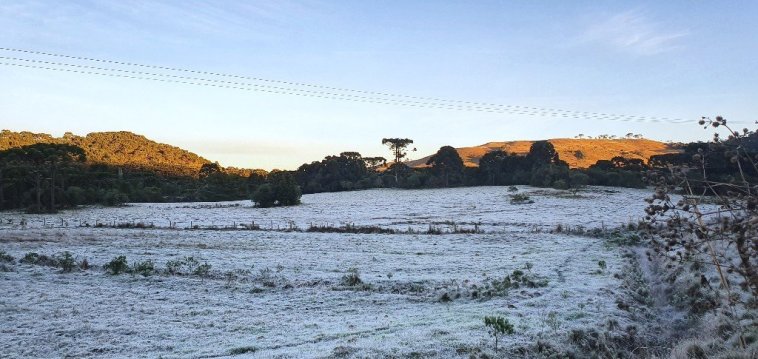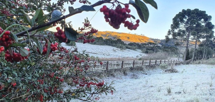 A Serra Catarinense teve outra madrugada “muito” gelada durante o amanhecer desta segunda-feira (8) com temperaturas negativa ainda durante as primeiras horas do dia.