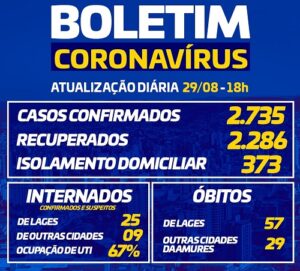 O Boletim Epidemiológico divulgado neste sábado (29), às 18 horas, é o melhor em termos de dados numéricos, dos últimos dias. Em Lages, neste dia, o lamento de mais um óbito. Por outro lado, poucos casos confirmados adicionados em relação ao dia anterior, apenas 10, e, por outro lado um maior número de recuperados, além da diminuição daqueles que estão em isolamento domiciliar.